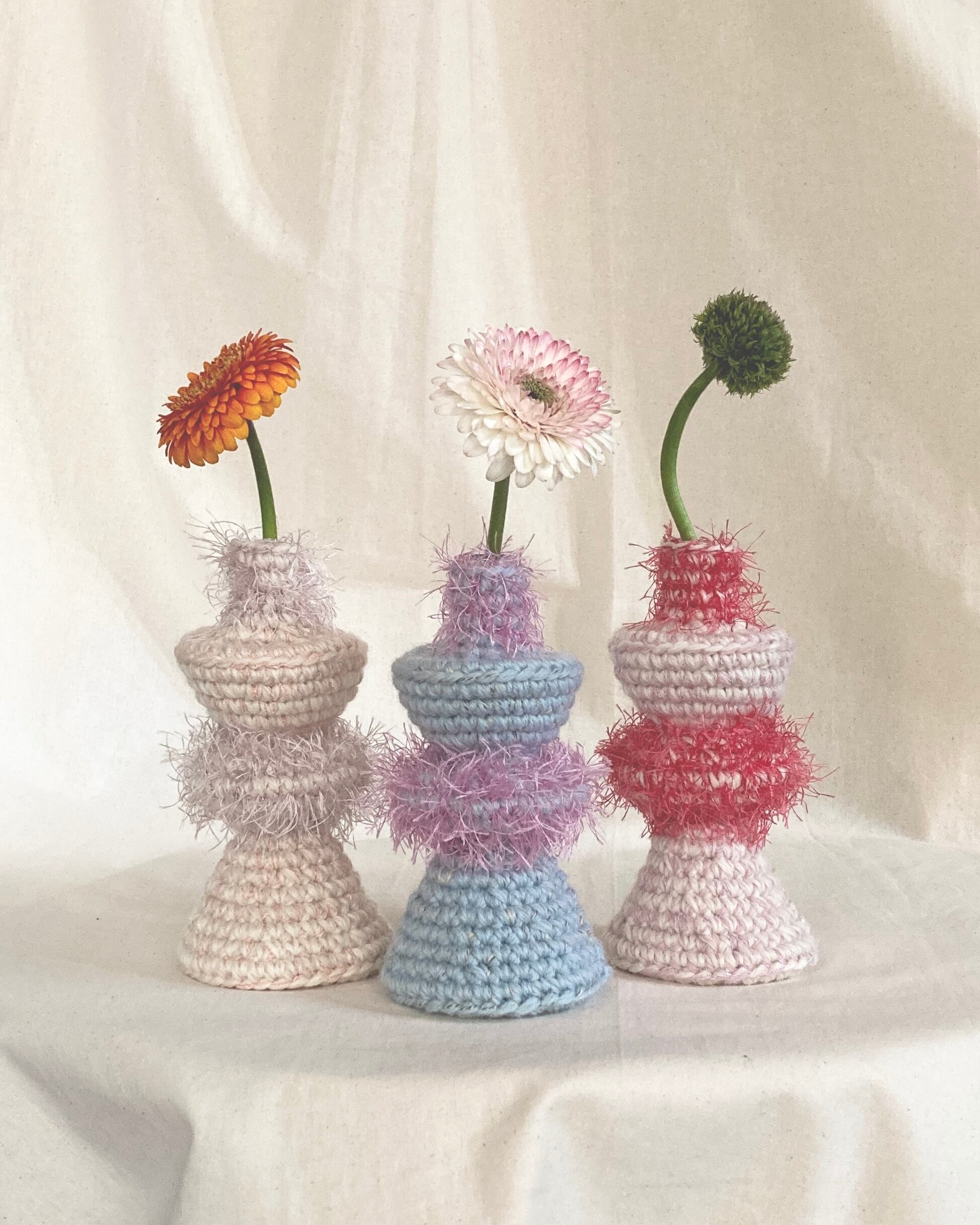 毛糸で編んだニットのフラワーベース*