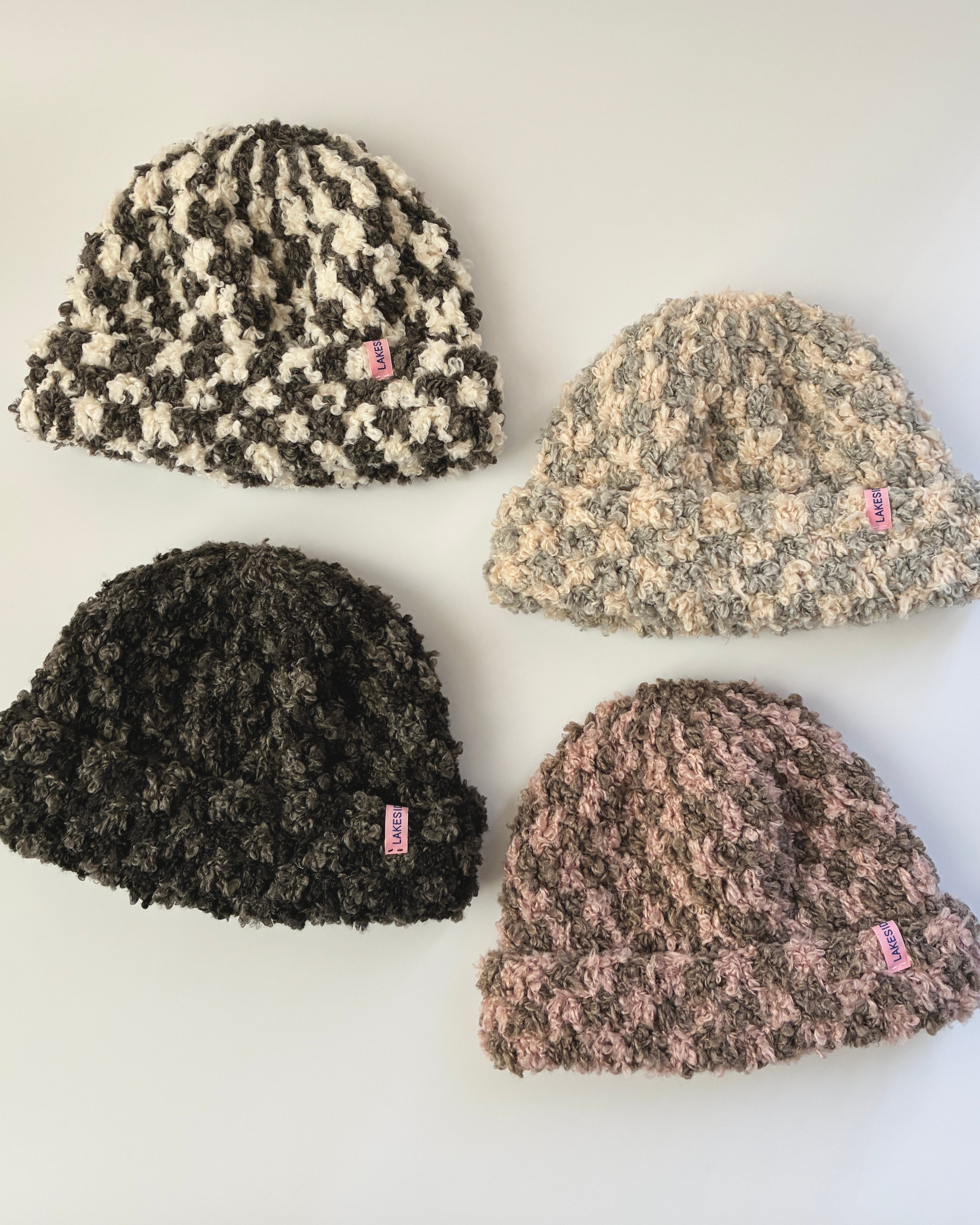 Fluffy Knit Cap ✳︎ pink beige&brown