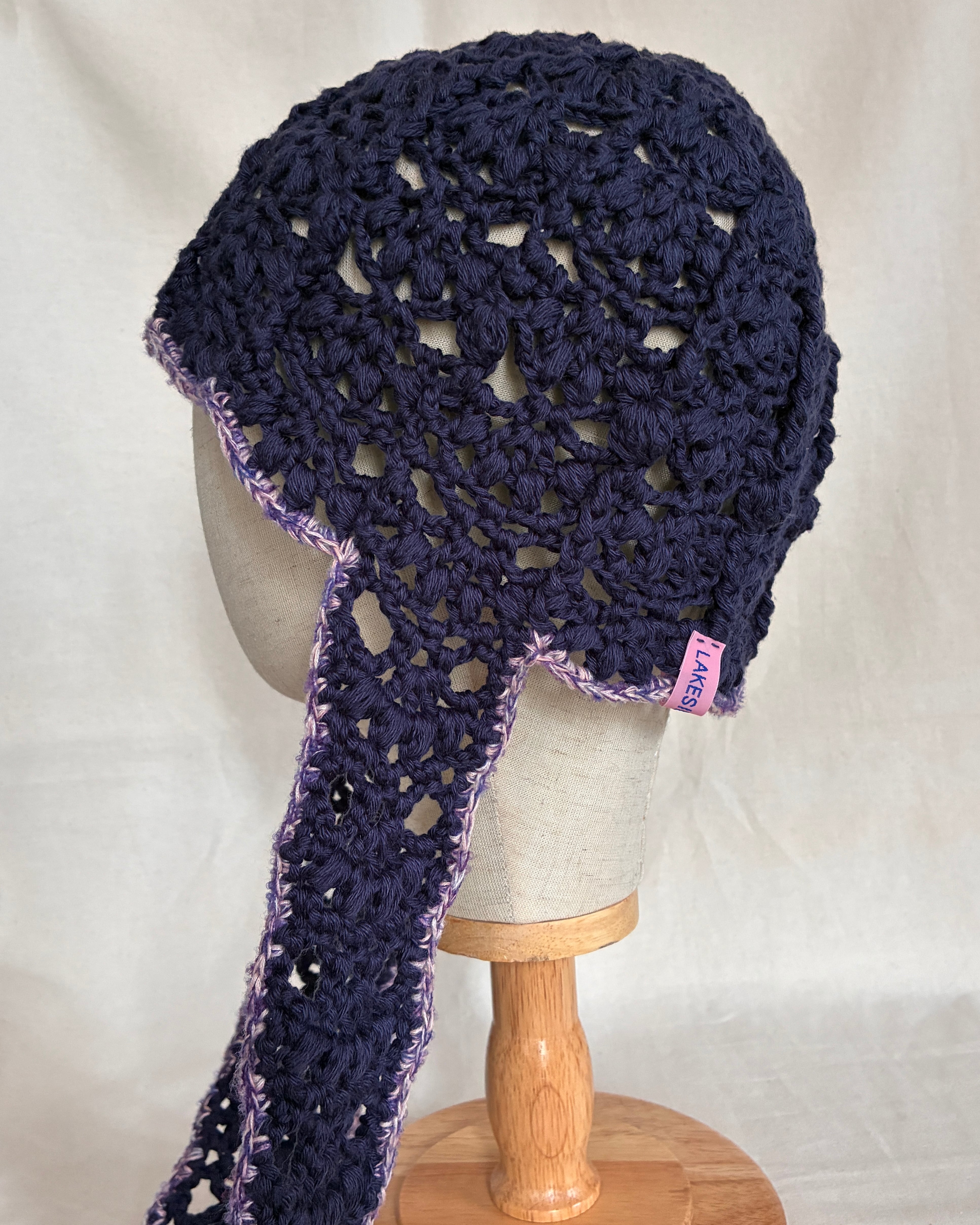 Crochet Lace Hat / navy